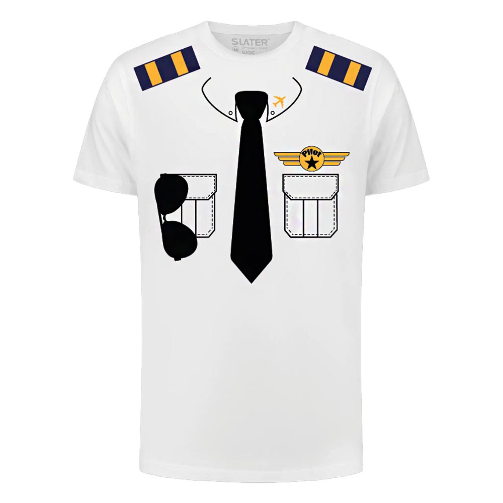 Word de captain van elk feest met dit leuke piloten-T-shirt! Het shirt heeft een realistische print van een pilotenuniform met details zoals epauletten, stropdas en badges. Gemaakt van zacht, ademend katoen, zodat je er de hele avond comfortabel uitziet. Ideaal voor carnaval, themafeesten of als origineel cadeau voor luchtvaartfans.