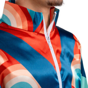 Met dit fantastische retro 80s trainingspak ben jij dé ster op elke Foute Party! Zijn opvallende kleuren maken ‘m een absolute eyecatcher, alsof je rechtstreeks uit Maaskantje komt gewandeld.